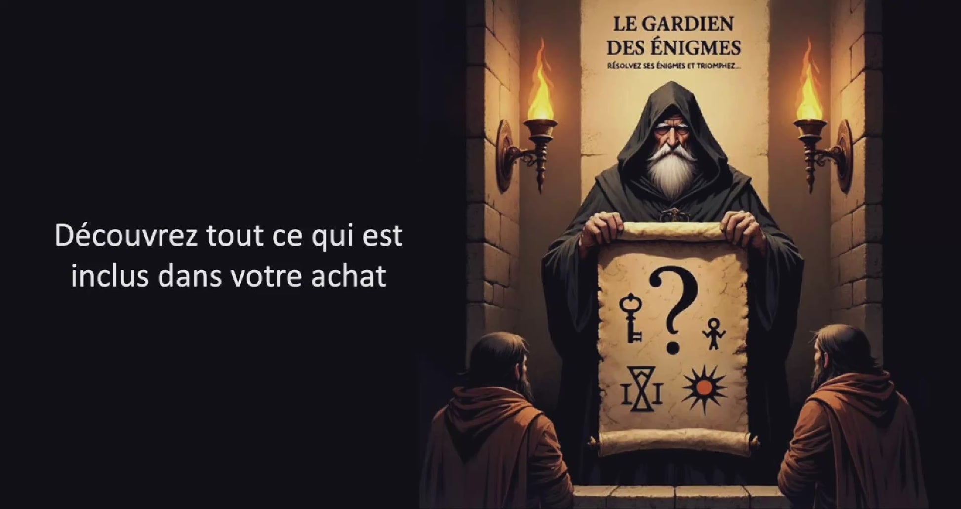 Fruit d'un long travail de tri et de sélection parmi d'innombrables énigmes existantes, nous vous proposons cette collection de cartes élégantes et pratiques , conçues pour être accessibles à tous, petits et grands. Que vous souhaitiez animer une soirée entre amis, challenger vos proches ou simplement vous tester seul contre le gardien des énigmes , ce jeu est fait pour vous !